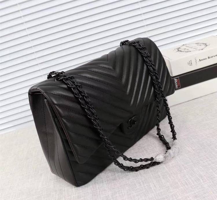 / Chanel Double Flap Classic Handbag (CH229V-Pure-Black)