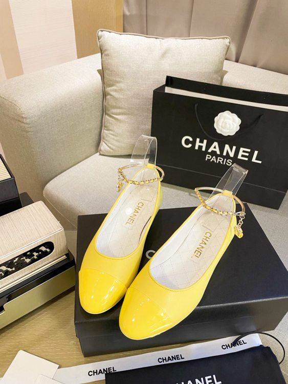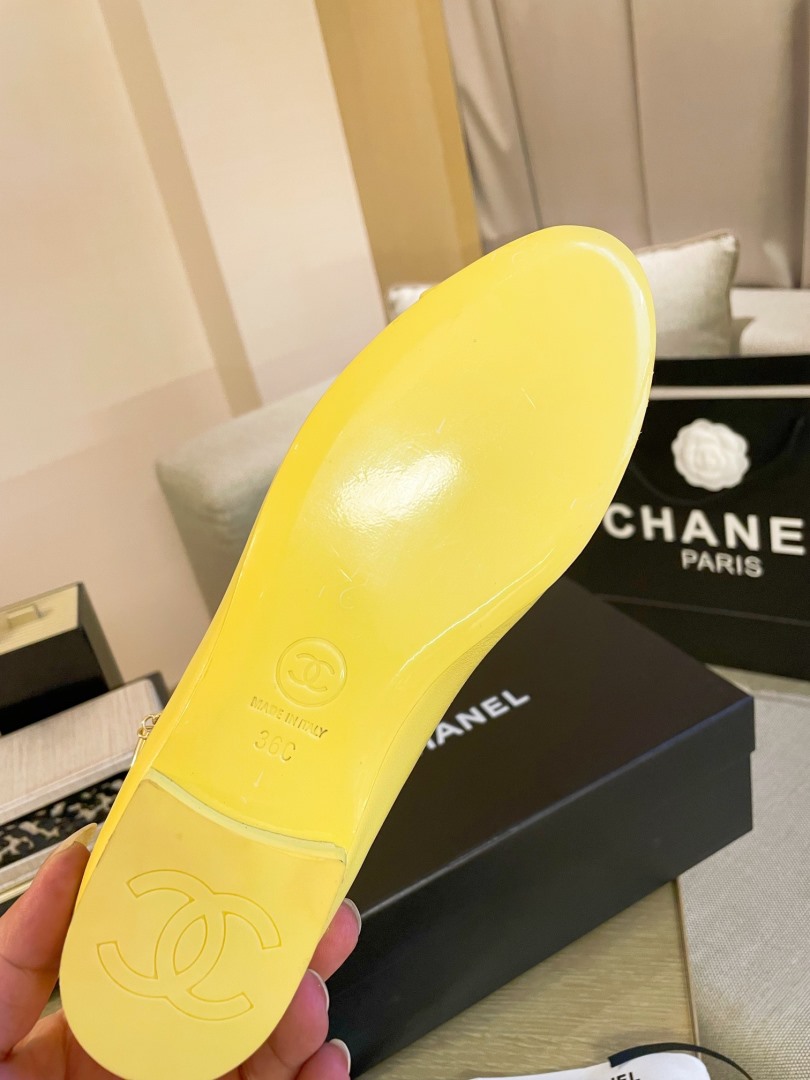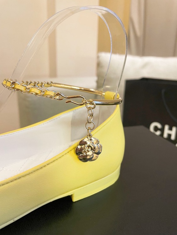 / Chanel Women Flats Yellow CHN-019